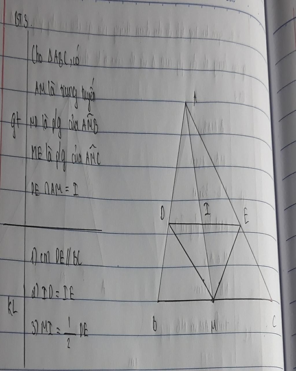 b) $DE//BC$ `=>` $DI//BM; IE//MC$