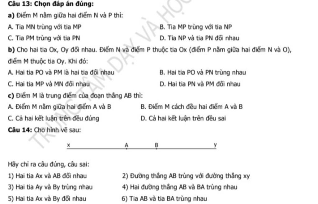 `6)` Tia `AB` và `BA` trùng nhau: Sai `(` không chung gốc `)`