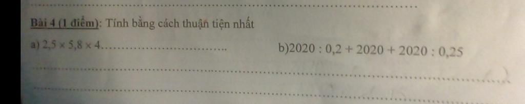 `b) 2020 : 0,2 + 2020 + 2020 : 0,25`