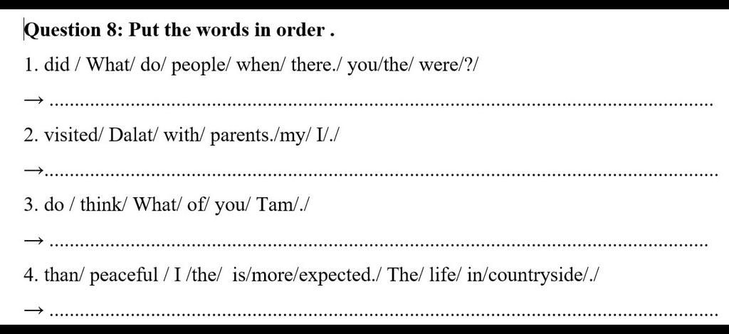 `-` QKĐ dạng nghi vấn: (Wh-qu) + did + S + V? | was/were + S + ....?
