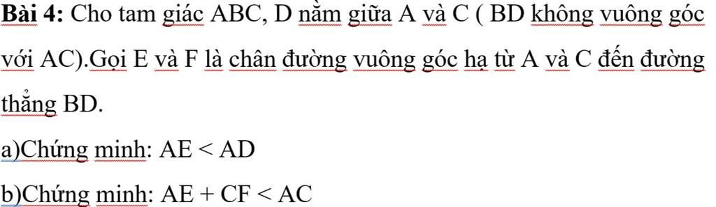 a.Ta có: $AE\perp BD\to AE<AD$(Quan hệ đường vuông góc, đường xiên)