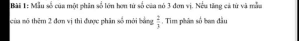 Ta được phân số mới là `2/3`, vậy ta có phương trình: