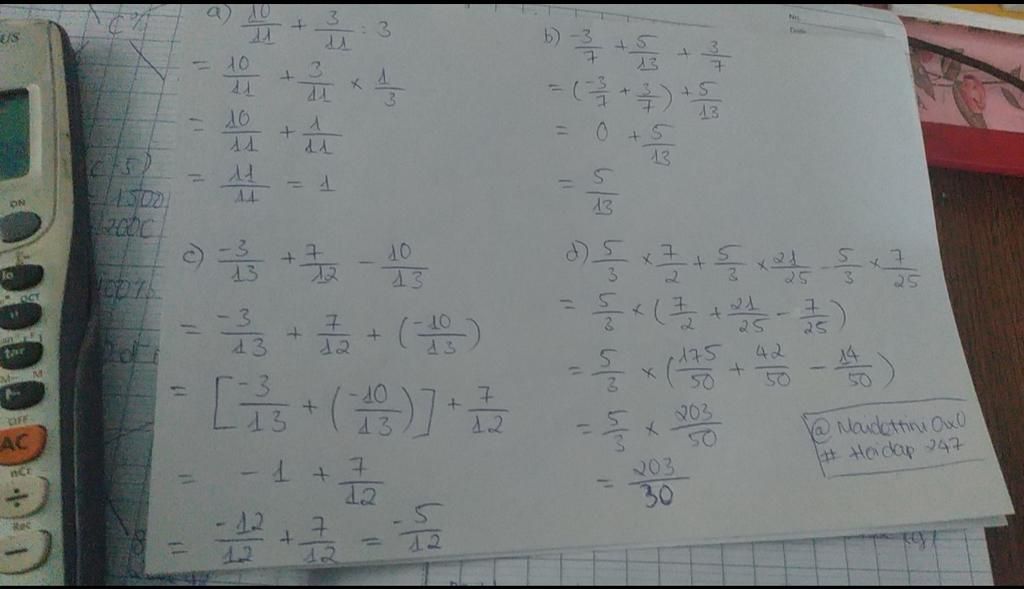 Sửa: `b) -3/7+ 5/13 + 3/7`