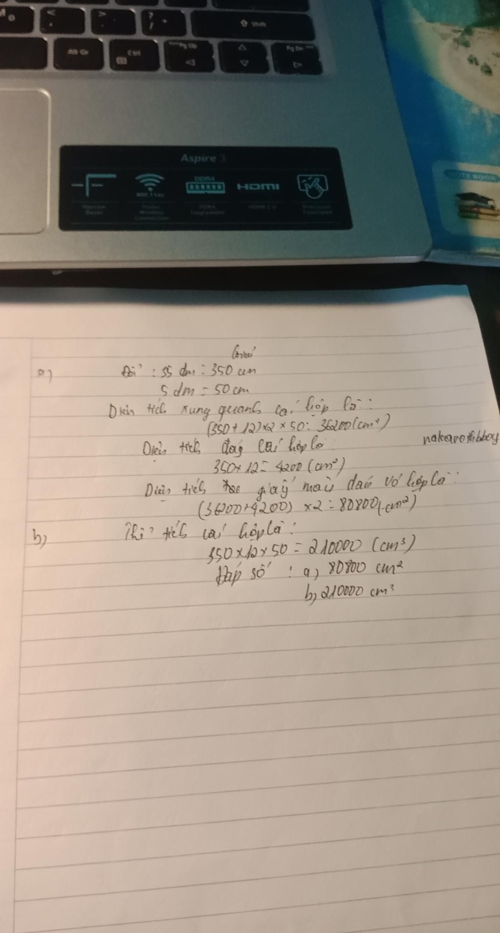 => A . Diện tích giấy màu dán vỏ hộp là :