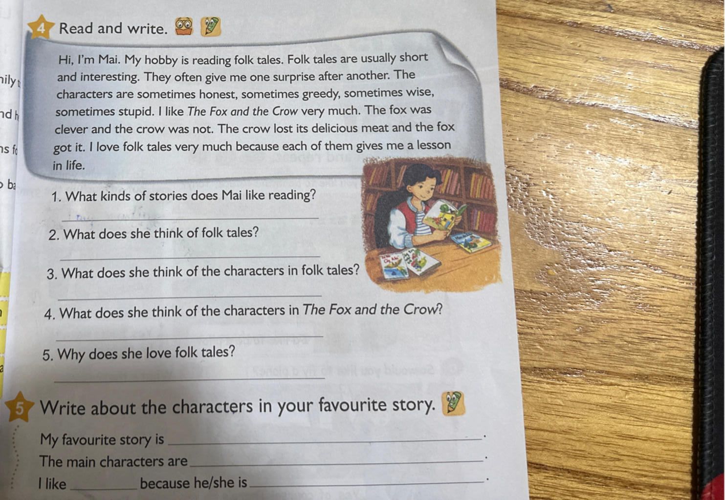Hi, I'm Mai. My hobby is reading folk tales. Folk tales are usually short