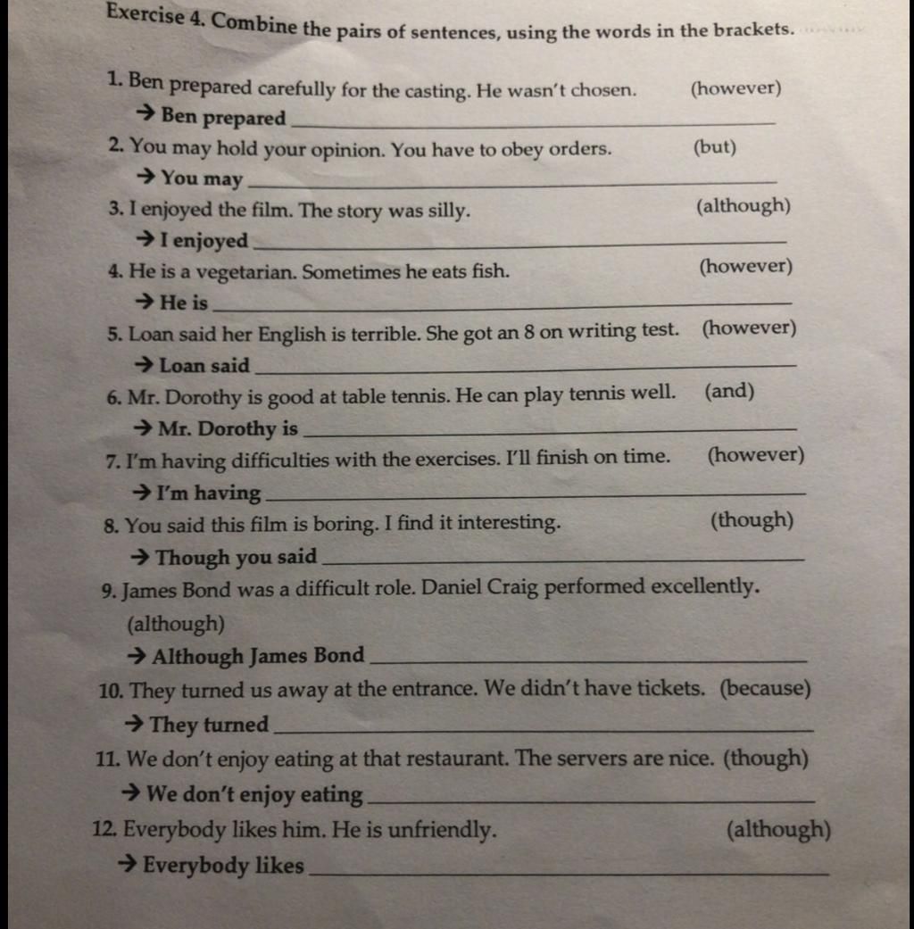 1.Ben prepared carefully for the casting.However,he wasnt chosen