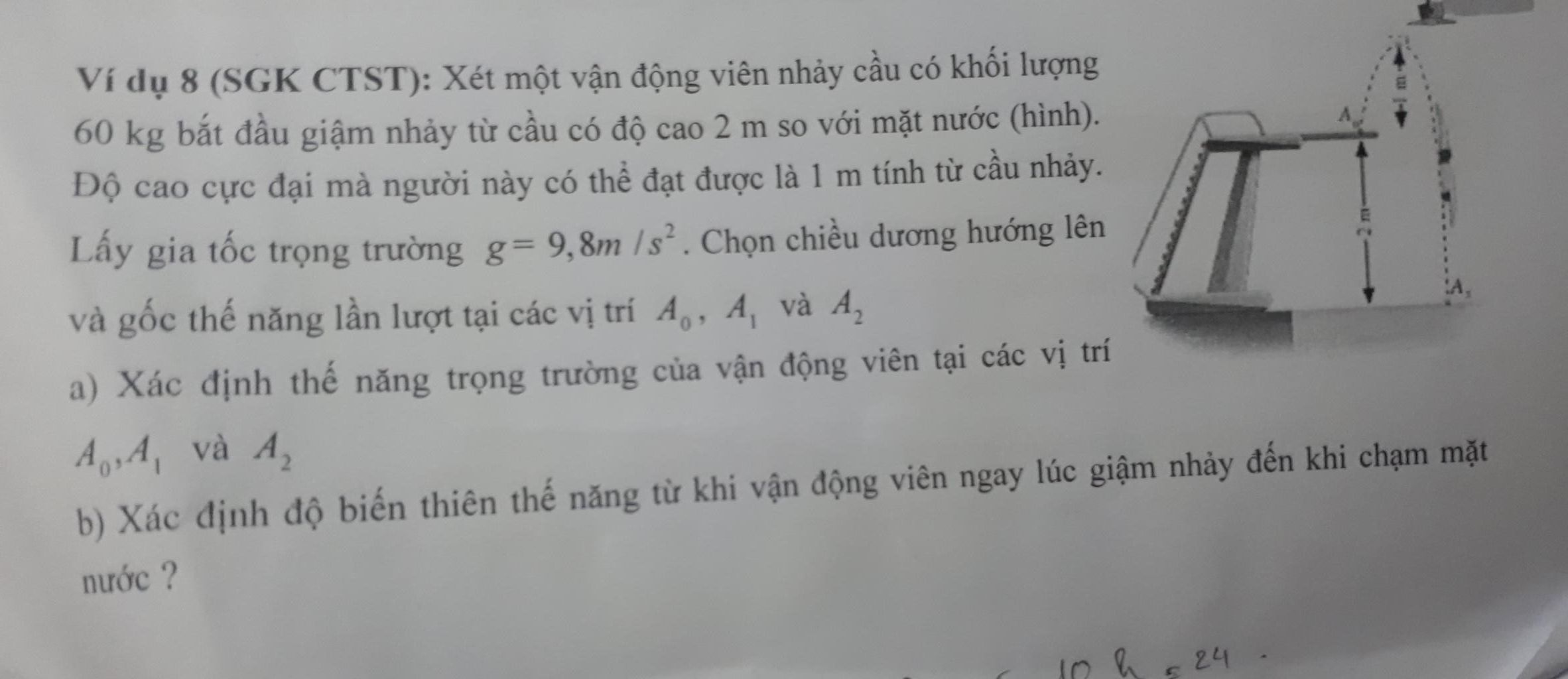 a) Thế năng trọng trường của vận động viên ở các vị trí 0, 1, 2 lần lượt là: