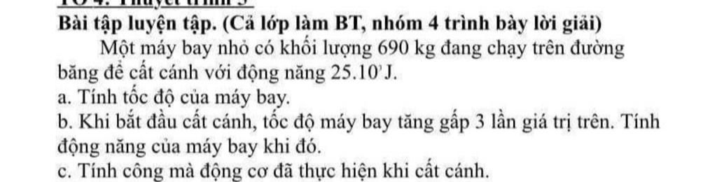 ⇒ v= $\sqrt[]{\frac{2Wđ}{m}}$ = 8,5 m/s