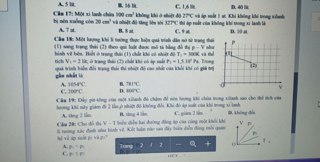 {p_1} = \dfrac{4}{3}.1,{5.10^5} = {2.10^5}Pa\\