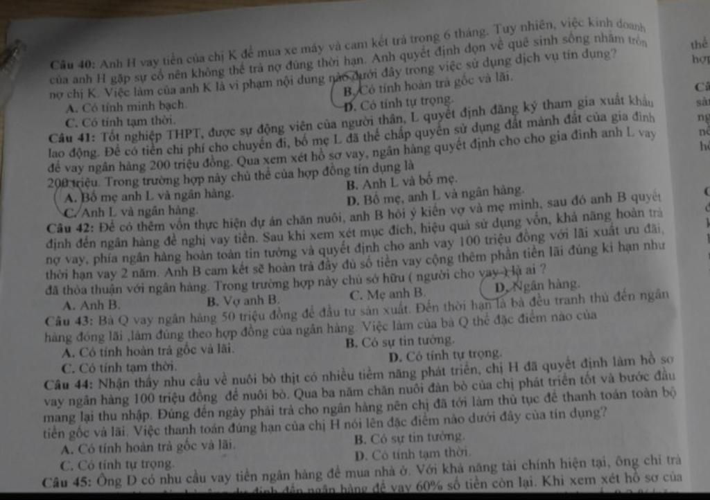 -> A. Bố mẹ anh L và ngân hàng .