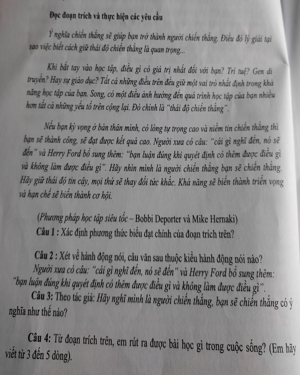 câu 1:phương thức biểu đạt chính của đoạn văn là nghị luận
