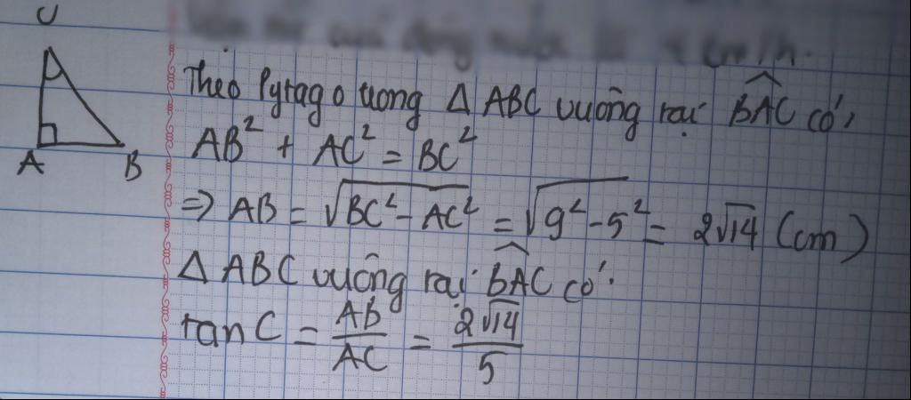 +, tan C = $\frac{AB}{AC}$ (Tỉ số lượng giác)