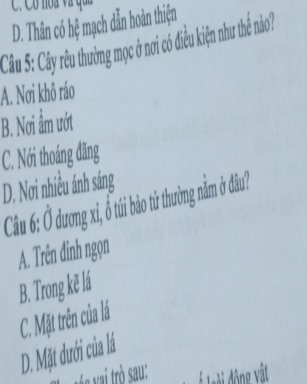 `-` Vì rêu là thực vật chưa có mạch dẫn, rễ thật nên không thể hút nước từ dưới đất, rêu cần nhiều nước để sống và nước phải phủ đều toàn thân `->` rêu sống ở nơi ẩm ướt