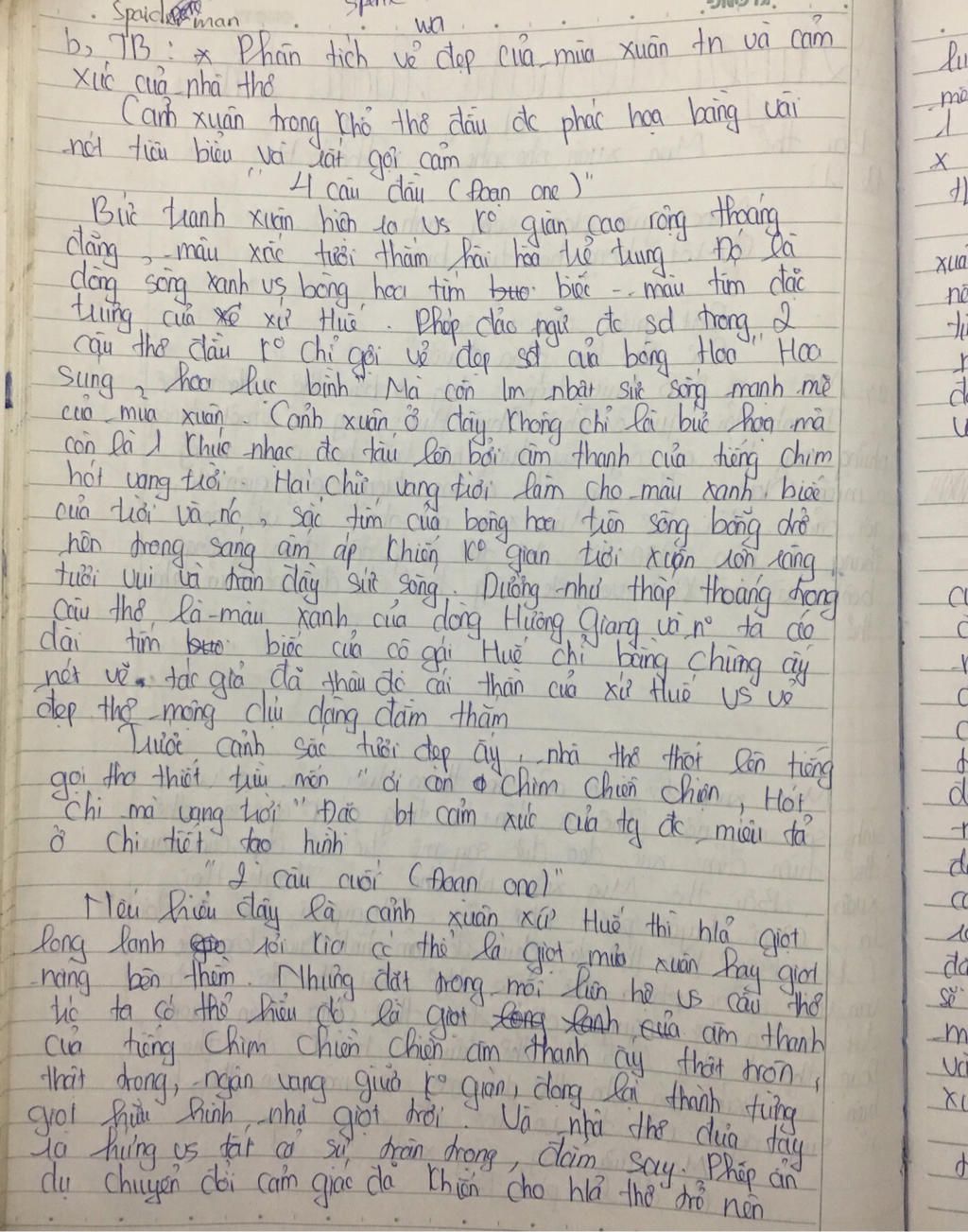 + Nhà thơ gọi “ơi” nghe sao mà tha thiết thế! Lời gọi ấy không cất lên từ tiếng nói mà cất lên từ sâu thẳm tình yêu thiên nhiên, cất lên từ tấm lòng của nhà thơ trước mùa xuân tươi đẹp với những âm thanh rộn rã.