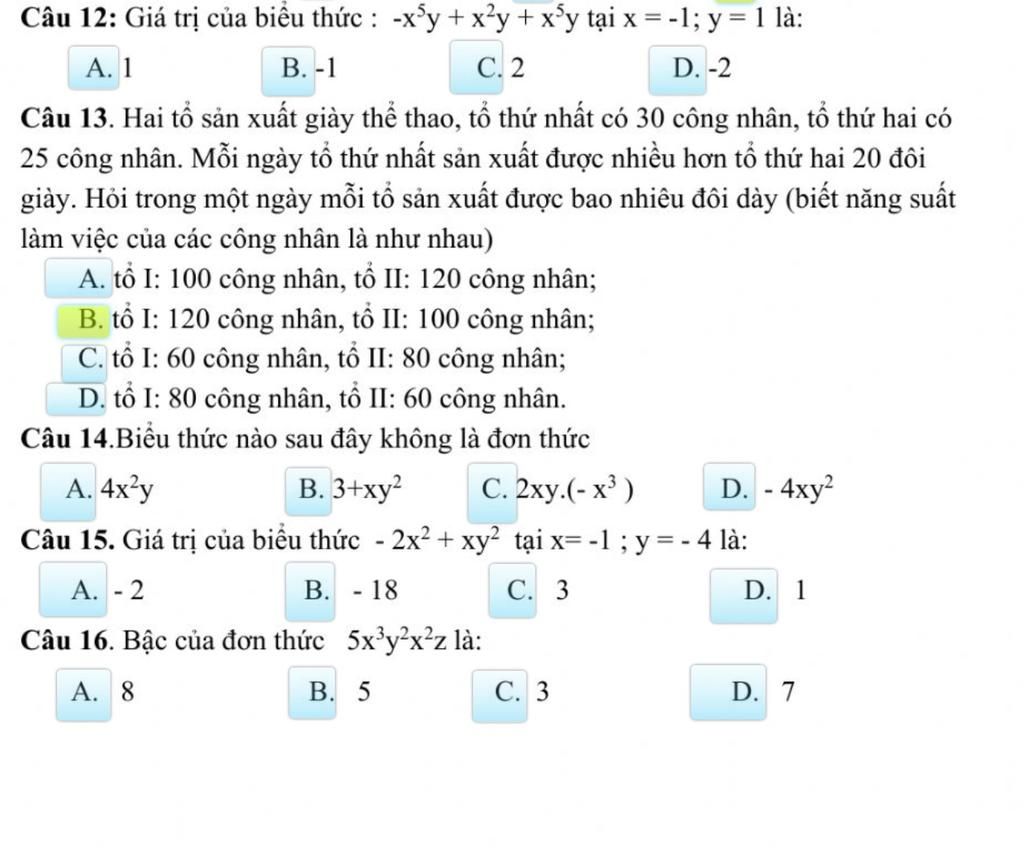 14, ý c biểu thức 2xy.($x^{3}$ ) không phải là đơn thức ,là đa thức