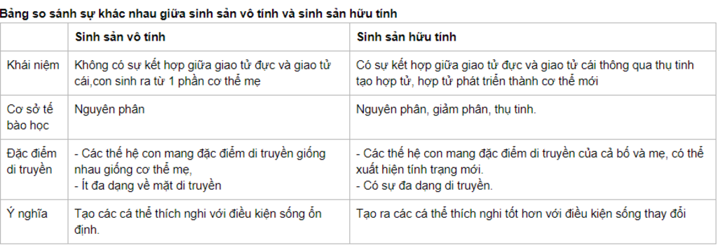 Khác nhau:+ sinh sản vô tính tạo ra thế hệ sau không giống nó bị hạn chế chỉ có ở thực vật