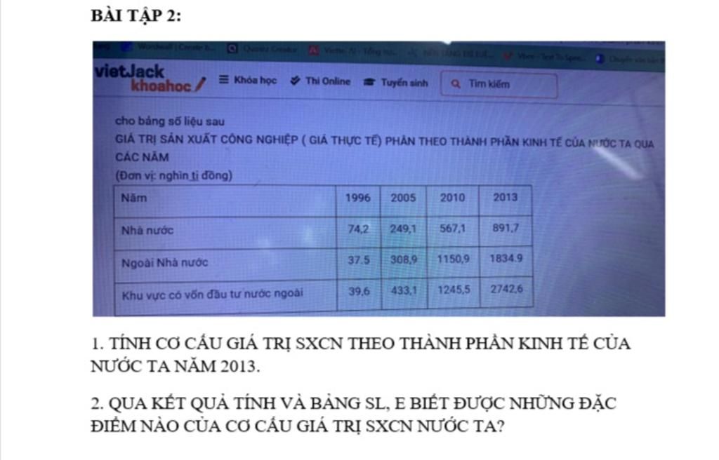 GIÁ TRỊ SẢN XUẤT CÔNG NGHIỆP ( GIẢ THỰC TẾ) PHÂN THEO THÀNH PHẦN KINH TẾ CỦA NƯỚC TA QUA