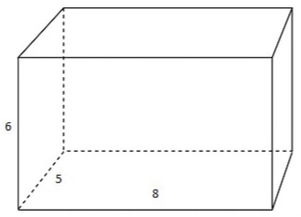 Thể tích hình hộp chữ nhật là: V = 8 x 5 x 6 = 240 (cm3)