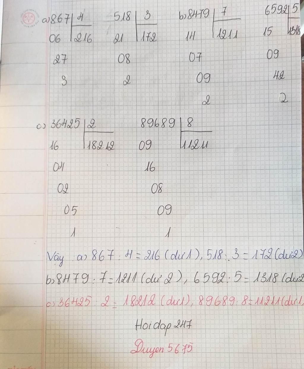 Thương là ở sau chỗ bằng còn dư là ( dư .. ) dods