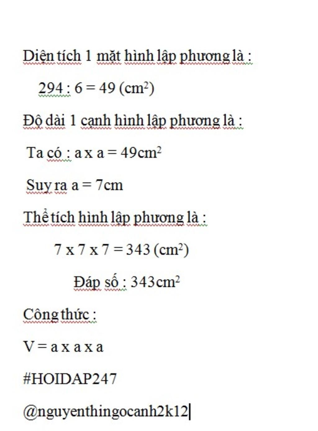 Vì 49= 7 × 7 nên cạnh của hình lập phương đó là 7 cm