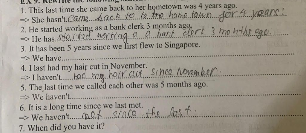 `3`. `W`e haven't flown to Singapore for `5` years.