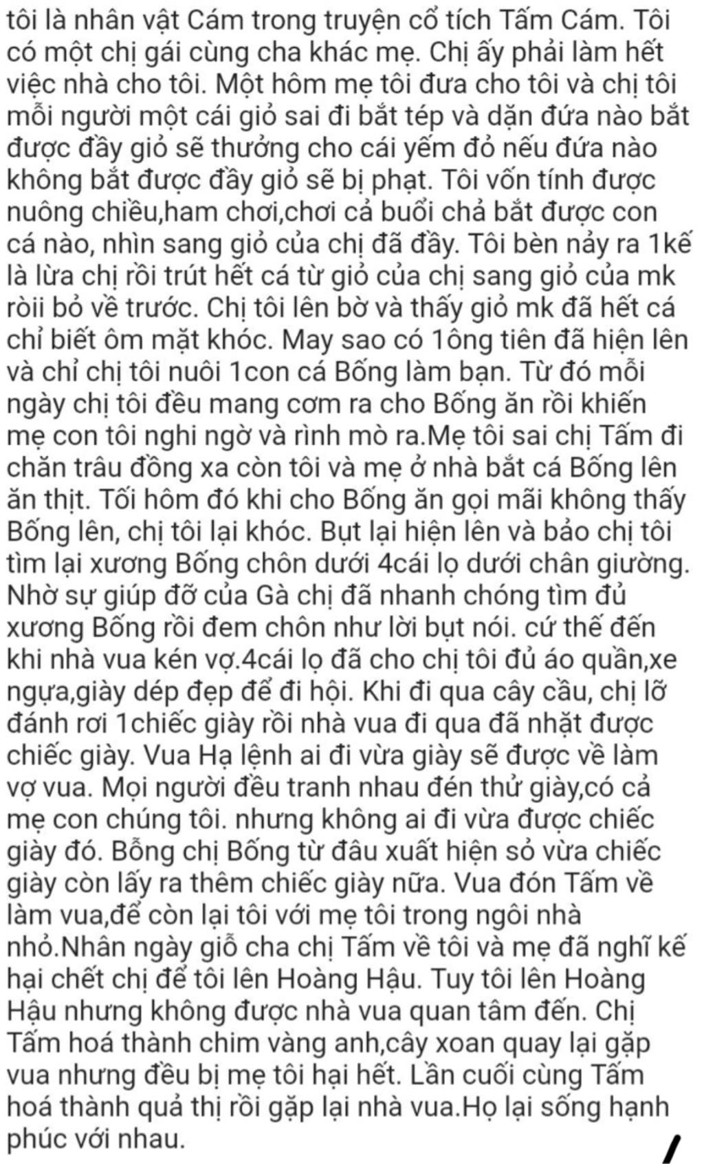 Đóng vai nhân vật kể lại truyện "Tấm Cám" (không chép mạng ạa) tớ cảm ơn