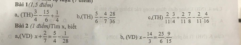 `b) 5/6 - 4/7 . 28/36`