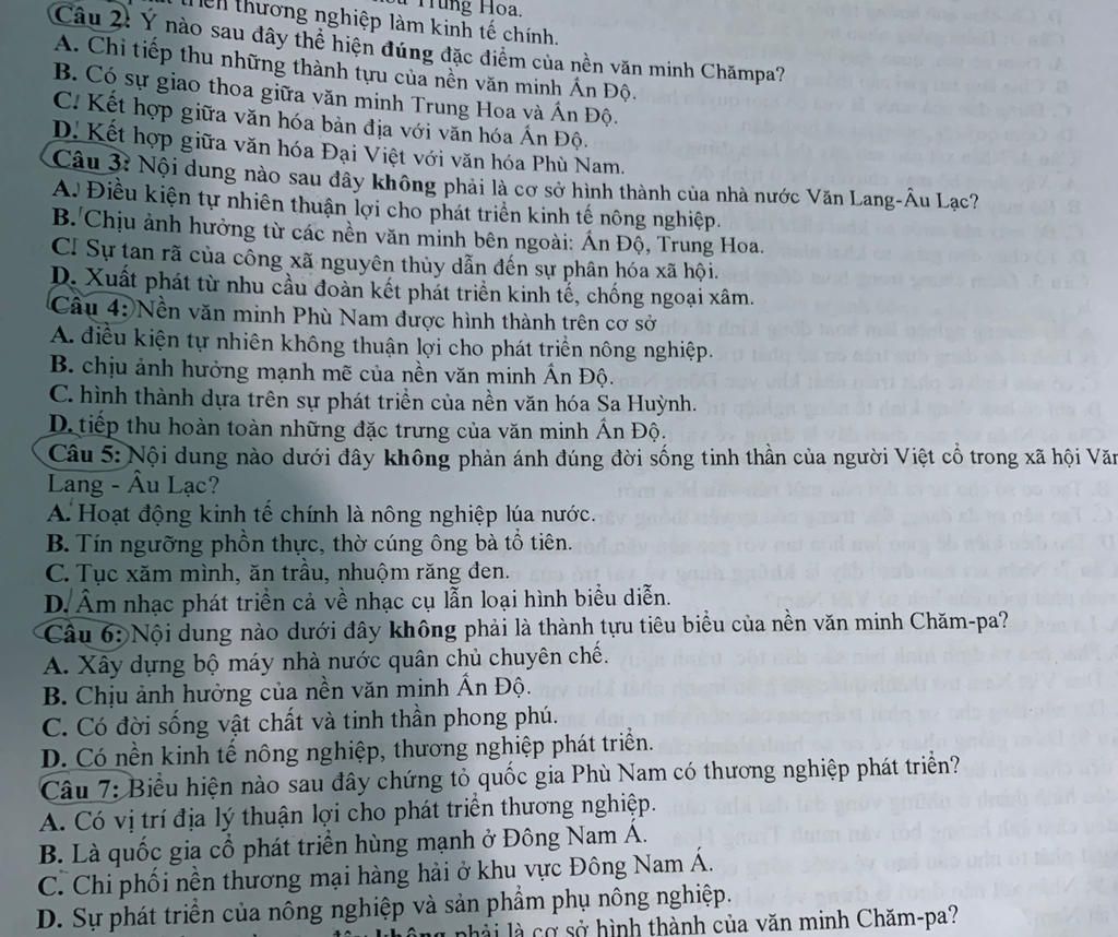 (Câu 2: Ý nào sau đây thể hiện đúng đặc điểm của nền văn minh Chămpa?