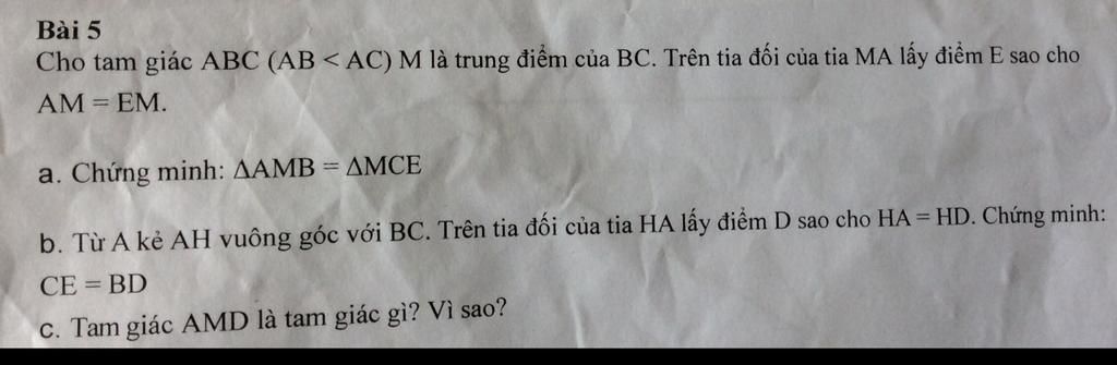 =>tam giác AMB=tam giác MCE [c.g.c]