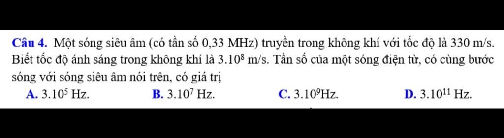 `<=>` $\dfrac{330}{0, 33.10^6}=\dfrac{3.10^8}{f'}$