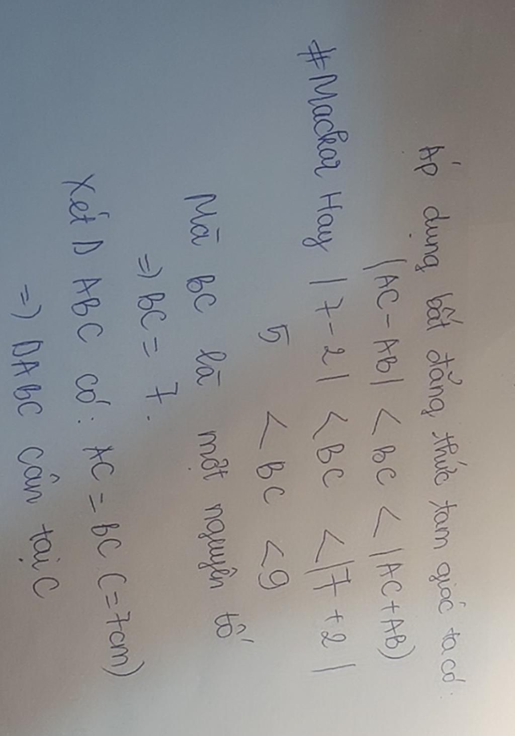 Từ 7 + 2 > a ⇒ a < 9 ⇒ a có thể là 2,3,5,7 (2)