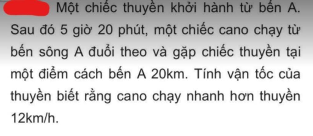Đi hết quãng đường `20km` thì thuyền cần số thời gian là: `20/x`
