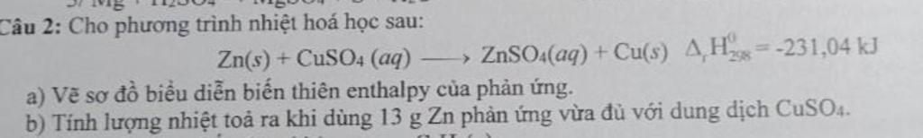 $1$ mol $Zn$ phản ứng tỏa ra lượng nhiệt $231,04kJ$