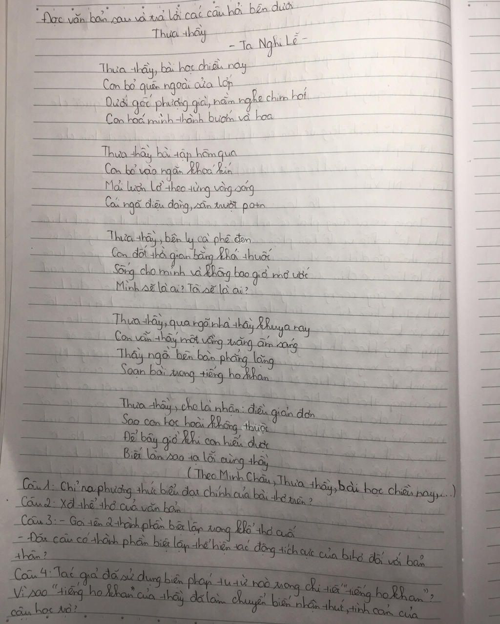 Cậu học trò đã nhận thức đc công lao to lớn của ng thầy qua chi tiết tiếng ho khan những vất vã thầy đã hy sinh vì các em học sinh thân mến bạn học sinh đã cảm nhận đc tình thương mà thầy dành cho bạn hs nói riêng và toàn thể tất cả hs thầy dạy nói chung.