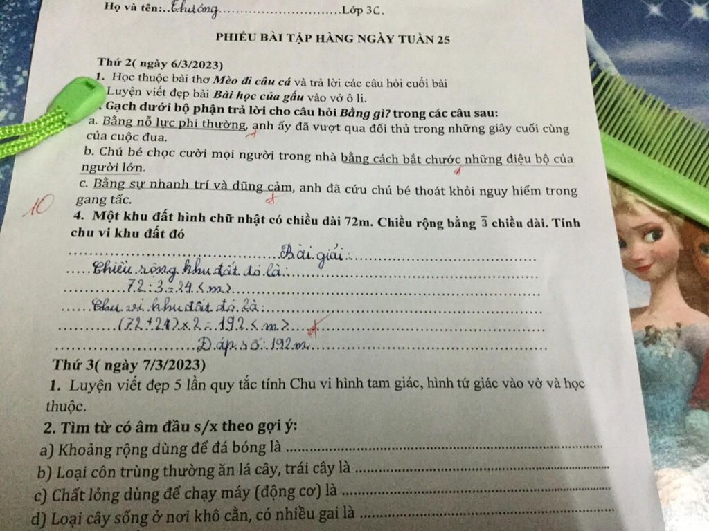 Họ và tên:.. hưởng. .Lớp 3C. PHIẾU BÀI TẬP HÀNG NGÀY TUẦN 25 Thứ 2( ngày 6/3/2023)Hãy luôn nhớ cảm ơn và vote 5*