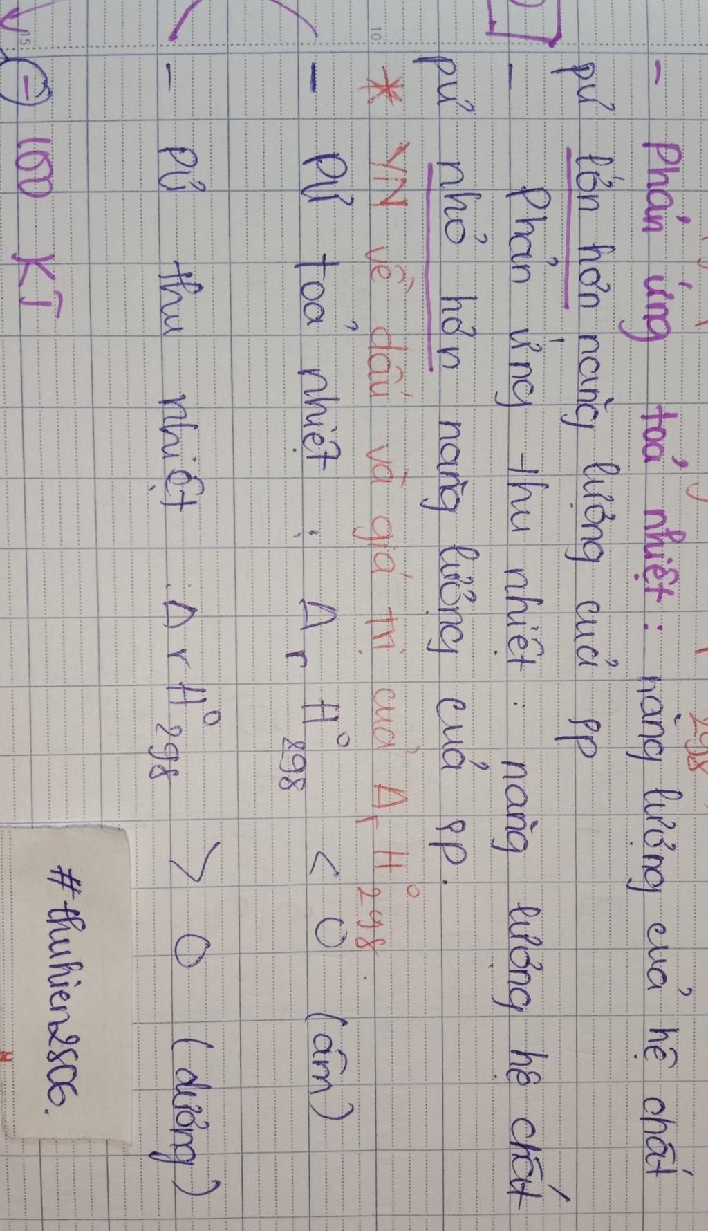 Nêu khái niệm phản ứng tỏa nhiệt, thu nhiệt; điều kiện chuẩn (áp suất 1 bar và thường chọn nhiệt độ 250C hay 298K); enthalpy tạo thành (nhiệt tạo thành) fH0298, và biến thiên enthalpy (nhiệt phản ứng) của phản ứng rH0298