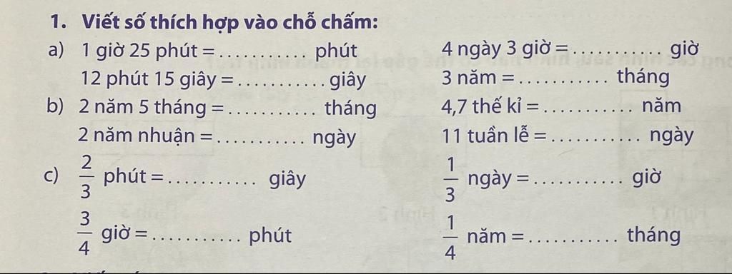 3/4 giờ = 45 phút 1/4 năm = 3 tháng