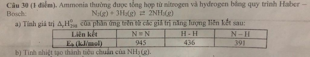 $N_2(g)+3H_2\rightleftharpoons 2NH_3(g)\quad\Delta_r H^o_{298}$