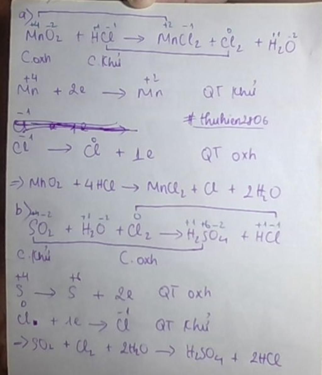 b.SO2 + H2O + Cl2 ------>H2SO4 + HCl.