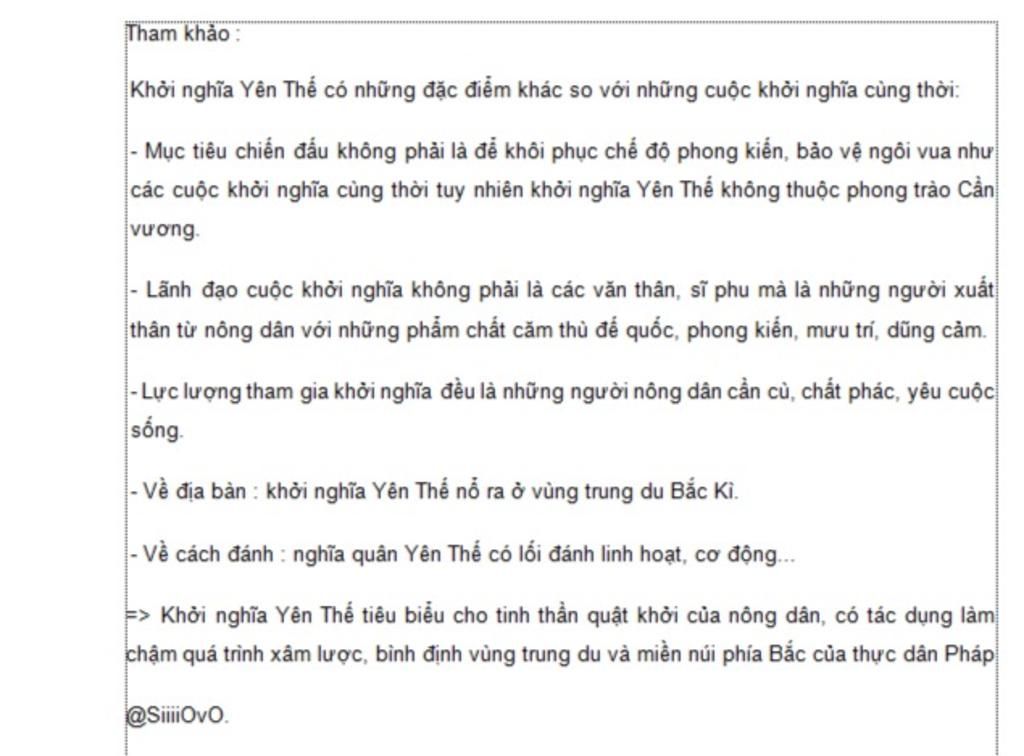 `9.` Khởi nghĩa Yên Thế có điểm nào giống và khác so với các cuộc khởi nghĩa cùng thời