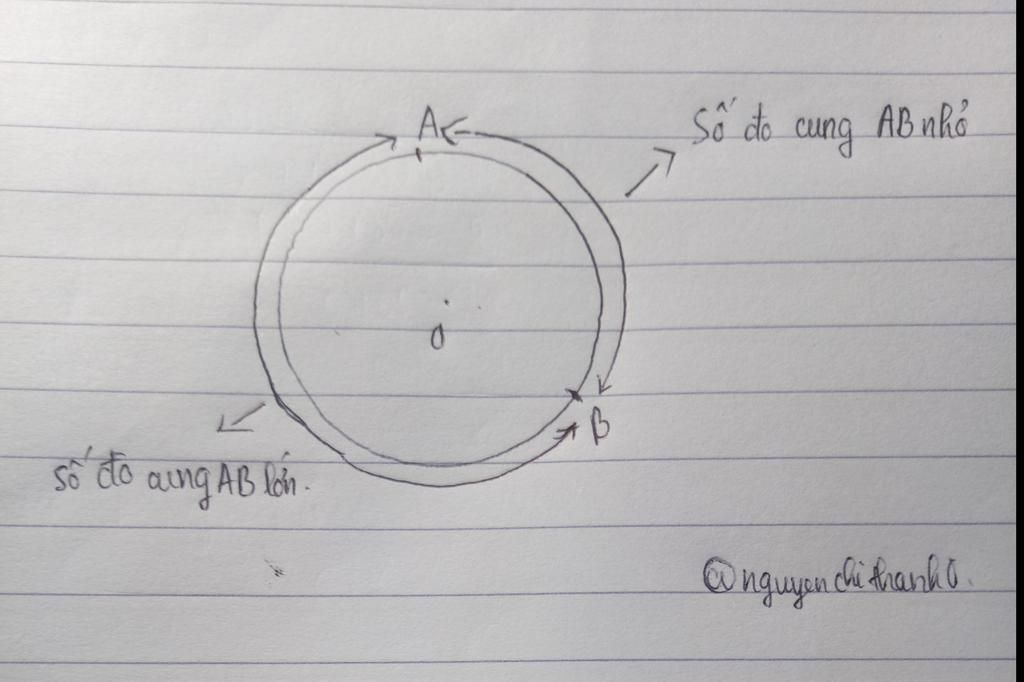 Số đo của cung này bé hơn số đo của phần còn lại cung đấy. Trong đường trong tổng cung lớn và cung bé đều bằng `360^o`. Khi biết cung này thì chỉ cần lấy `360^o-` số đo cung đã biết thì sẽ ra số đo cung còn lại.