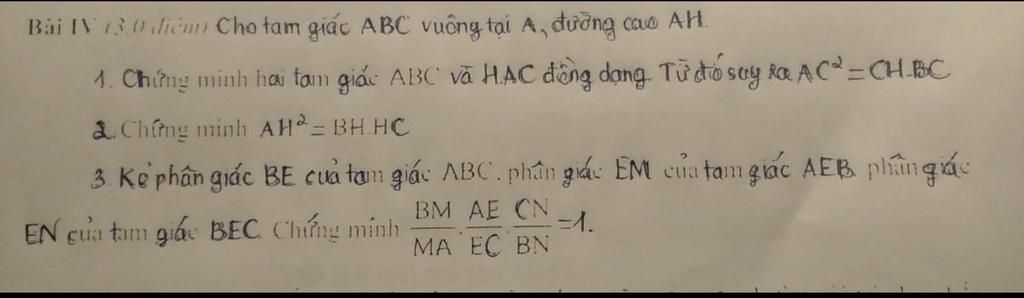 Bài IN 30 điểm Cho tam giác ABC vuông tại A, đường cao AH.