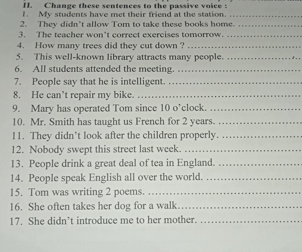 Change these sentences to the passive voice :
