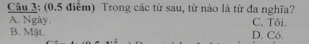 `-` Trong các từ được cho từ đa nghĩa là : từ Mặt