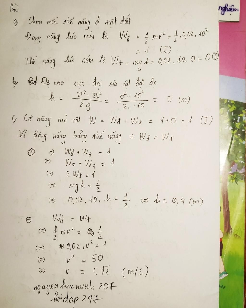 a,tính động năng và thế năng lúc ném