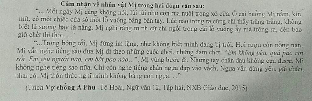 Trong hai đoạn văn trên, nhân vật Mị được mô tả với những cảm xúc khác nhau. Trong đoạn đầu, Mị được miêu tả như một người lặng lẽ, cô đơn và bị giam giữ trong cái buồng nhỏ, không có gì để làm và chỉ nhìn ra bên ngoài qua một lỗ vuông nhỏ. Cô ta cảm thấy như mình sẽ chỉ ngồi đó và chờ đợi cho đến khi chết đi. Trong đoạn tiếp theo, Mị được miêu tả là một người say rượu, bị trói và nhìn thấy mình như không bằng con ngựa. Cô ta đang trăn trở về tình yêu và cảm thấy bất lực trước cuộc đời.Từ những miêu tả trên, Mị được xem là một nhân vật u ám, đầy u sầu, khóc thầm và tự kỷ. Cô ta có vẻ như không có mục tiêu trong cuộc sống và đang sống trong sự tuyệt vọng và khó khăn. Mị là một nhân vật đáng thương và đặc biệt trong văn học Việt Nam, là hình ảnh của nhiều người phụ nữ trong thời kỳ đó, đang đối mặt với nhiều khó khăn và chịu đựng nhiều nỗi đau thương.