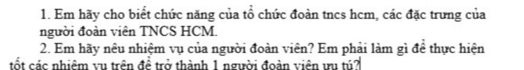 1. Em hãy cho biết chức năng của tổ chức đoàn tncs hcm, các đặc trưng của