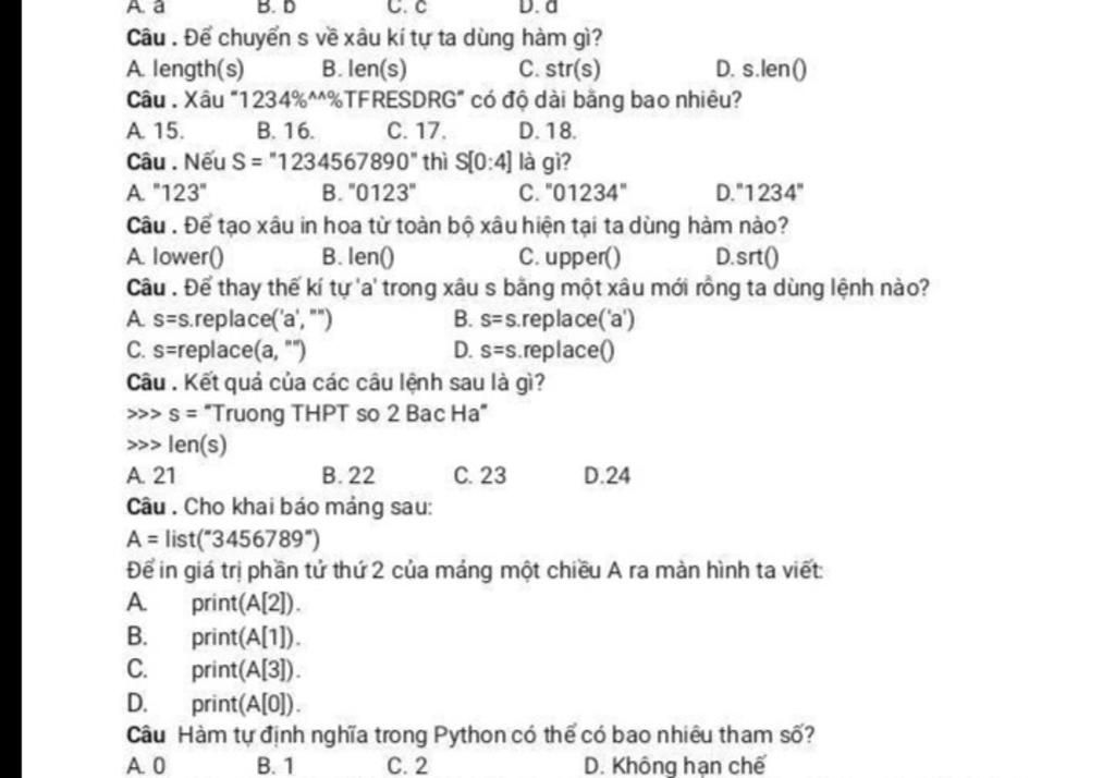 `1)` Trong python, hàm " str " dùng để chuyển 1 số sang dạng xâu kí tự