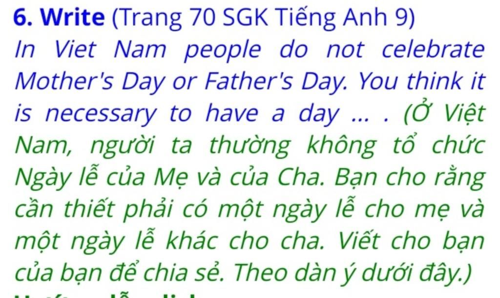 6. Write (Trang 70 SGK Tiếng Anh 9)