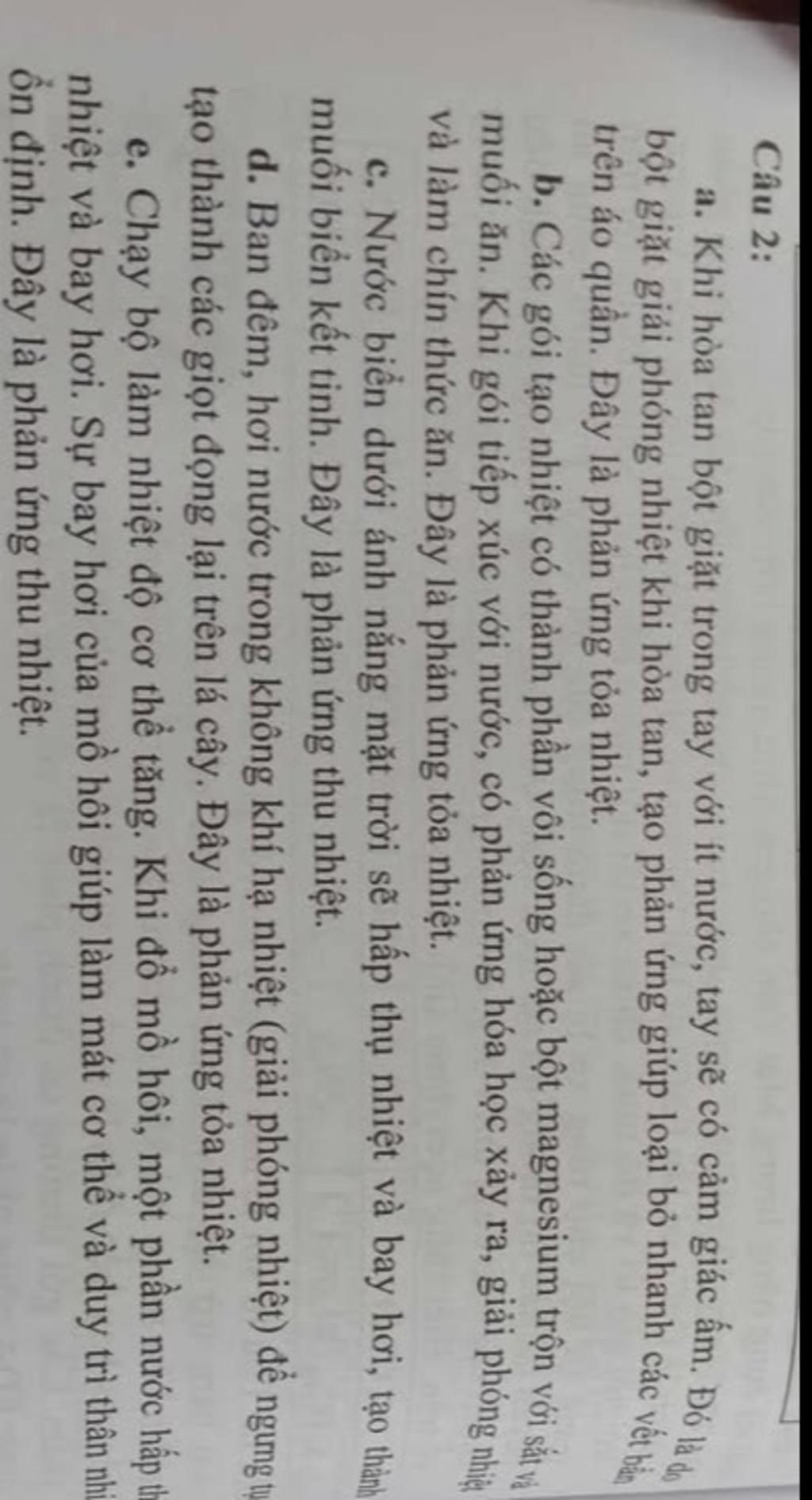 Các quá trình sau thuộc phản ứng thu nhiệt hay tỏa nhiệt ? Giải thích.
